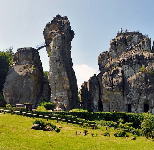 En el corazón del bosque Teutónico, dentro del estado de Renania del Norte-Westfalia, se encuentra uno de los monumentos naturales más enigmáticos de Alemania: Externsteine. Se trata de un conjunto de formaciones rocosas de arenisca que se alzan verticalmente sobre el paisaje como si fueran monolitos gigantes.