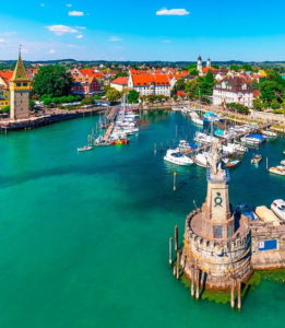 Una de sus joyas es la isla de Lindau, unida a tierra firme por dos puentes. Su casco antiguo, con casas medievales y calles adoquinadas, ofrece un ambiente encantador, y su puerto es particularmente famoso por su entrada decorada con el faro de Lindau y una imponente estatua del León de Baviera. Es un destino ideal para quienes desean combinar naturaleza, cultura e historia en un mismo viaje.