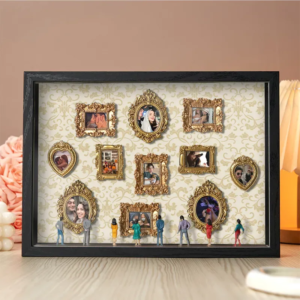 Puedes adquirir kits que incluyen marcos diminutos, luces LED y estructuras de madera, o bien armarlo desde cero con materiales que tengas en casa. La clave está en la curaduría: elegir imágenes significativas y acompañarlas con pequeñas descripciones o fechas. Este tipo de manualidad no solo es decorativa, sino también profundamente emocional, pues convierte recuerdos personales en una exposición íntima.