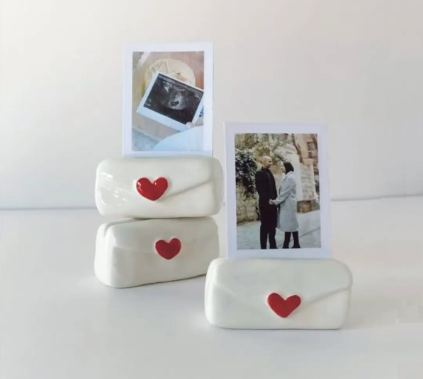 La cerámica es otra tendencia que ha ganado popularidad en redes sociales durante las últimas temporadas. Una idea encantadora es crear bases o soportes de cerámica diseñados especialmente para colocar fotografías instantáneas, como las de cámaras tipo Polaroid.