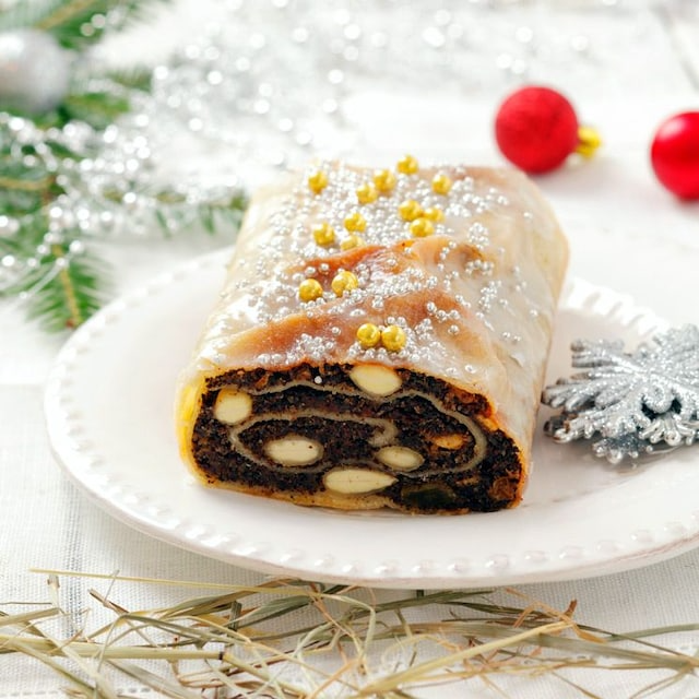 Nos inspiramos aquí en el clásico Strudel de manzana (típico de los países de Centroeuropa), pero aquí el relleno lo haremos con unas semillas de amapola, leche, canela, azúcar y huevo. La masa exterior la prepararemos también de forma casera. Una opción diferente como postre para las mesas navideñas.
