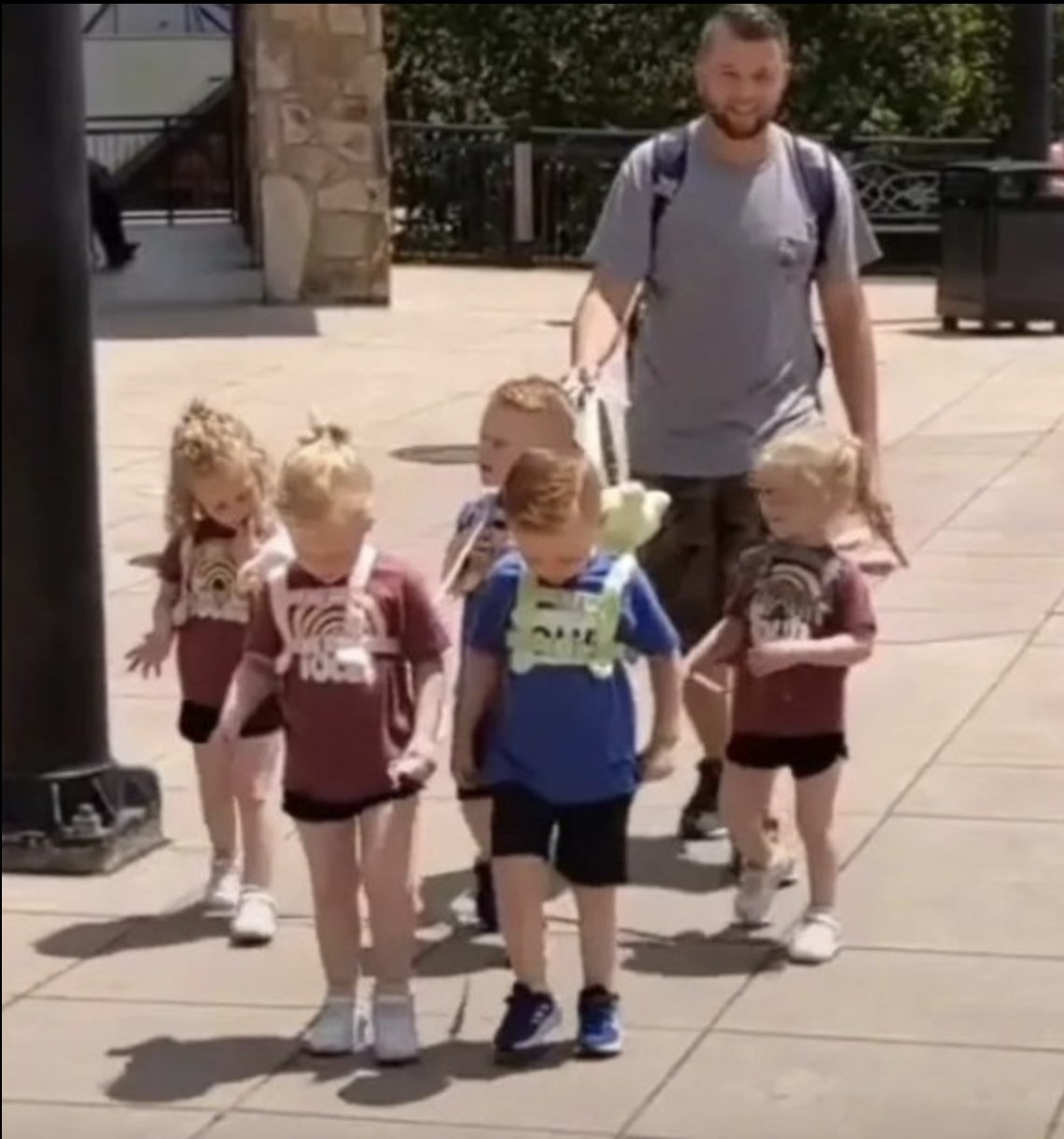 Padre desata debate en redes tras usar correas para sus quintillizos: ¿genialidad o exageración?