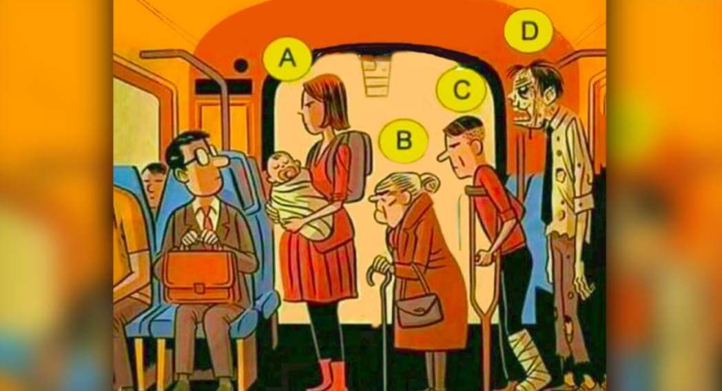 Ante esta situación, independientemente de la letra D, es decir, el zombi o un vagabundo, en realidad más de una persona que está sentada debe levantarse para ceder su silla a quien más lo necesita por las condiciones. ellos presentan.