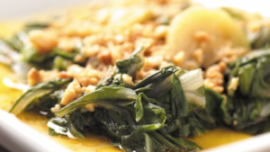 - En una sartén grande con aceite, saltea las espinacas con sal durante 2 minutos a fuego fuerte.
