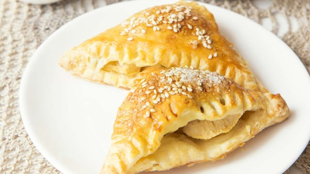 - Cubre con otro triángulo de hojaldre y presiona los bordes con un tenedor.