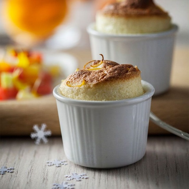 3. Incorpora las claras montadas y hornea en moldes individuales hasta que suban.