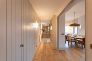 Los pasillos suelen ser áreas poco aprovechadas, pero con el enfoque adecuado pueden convertirse en espacios muy útiles. Incorporar una estantería de poca profundidad o baldas bien distribuidas permite sumar almacenamiento sin interferir en el tránsito.
