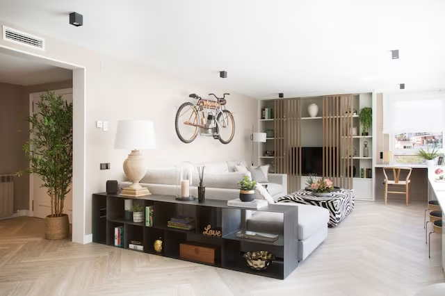 En viviendas con espacios abiertos, separar ambientes sin recurrir a obras puede ser un desafío. Una estantería abierta puede cumplir esta función de manera eficaz, actuando como un límite visual que no interrumpe la luz ni la circulación.