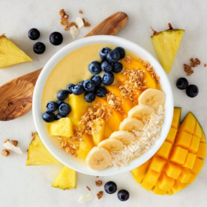 Smoothie bowl de piña, mango y banana