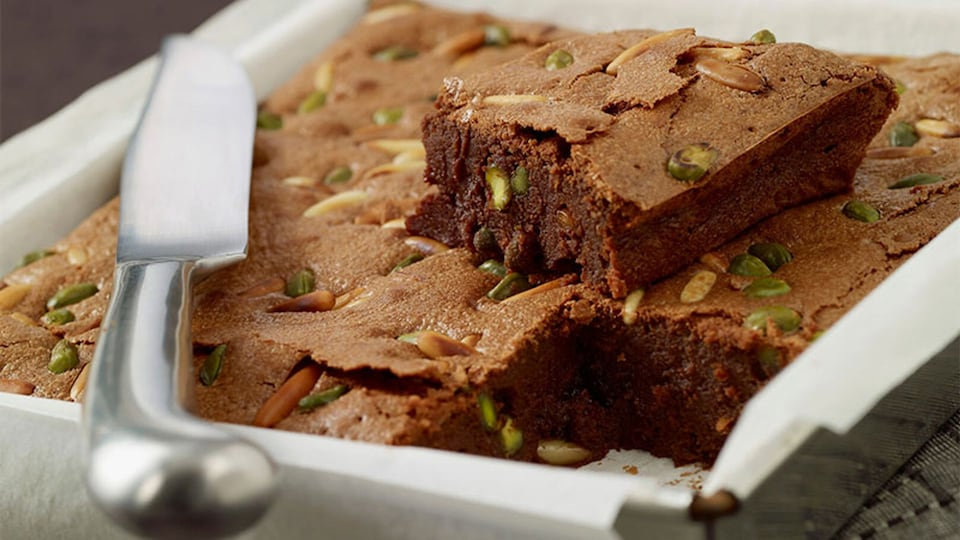 Brownie de piñones y pistachos