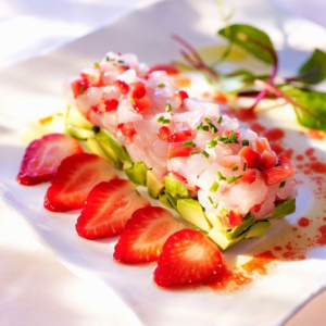 Para los amantes de los platos crudos y frescos, este tartar es una excelente opción. Se prepara con besugo muy fresco, cortado en dados pequeños, mezclado con aguacate y fresas. El aliño puede llevar zumo de lima, aceite de oliva y un toque de cilantro o cebollino. El resultado es un plato sofisticado y refrescante, ideal como entrante en una comida especial.