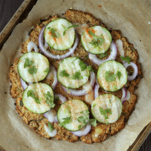 Este plato se inspira en la gastronomía india y combina lo mejor de dos mundos: el sabor intenso de una mezcla de coliflor especiada y la frescura de una raita a base de yogur y pepino. El resultado es una especie de pizza sin harina que sorprende por su equilibrio.