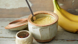 Crema de banana con curry, cardamomo y anís