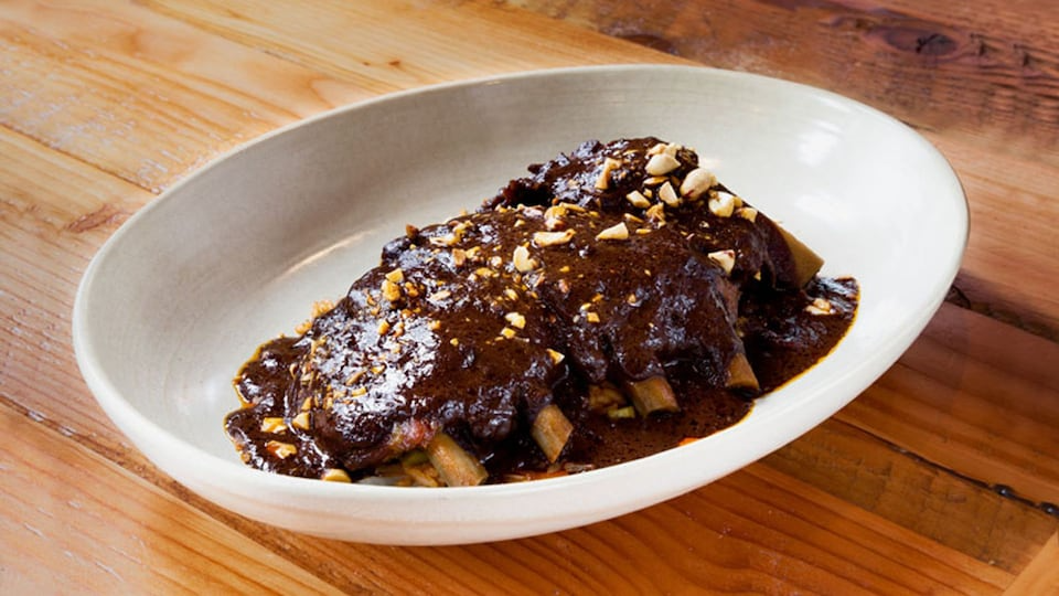 Costillas con mole rápido de café y chocolate