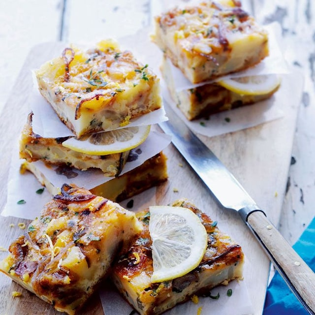 La tortilla de patatas es probablemente la tapa más emblemática de la cocina española. Ya sea con o sin cebolla, su sabor y textura son reconocidos y aplaudidos por millones. En esta versión reinventada, se incorpora cebolla caramelizada y se le añade un chorrito de zumo de limón justo antes de terminar la cocción. El resultado es una tortilla jugosa con un toque ácido que realza los sabores y aporta frescura. Para la presentación, se decora con unas finas rodajas de limón sobre la superficie, que también pueden exprimirse al gusto. Esta variación no altera la esencia del plato, pero le da un matiz moderno que encantará a quienes buscan sabores nuevos sin alejarse de lo tradicional.