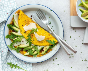 - Tortilla de espinacas con queso feta y un toque de aceite de oliva.