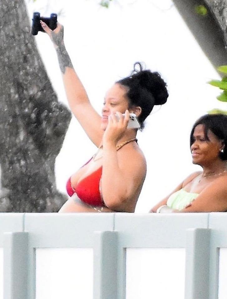 A la interprete de “Umbrella” se le puede observar muy relajada, además muy sonriente, mientras comparte con su familia y el papá de su bebé en el país donde nació, en centro América la pequeña isla “Barbados”.