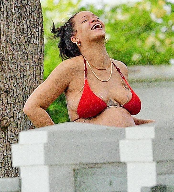 Sin maquillaje y al natural Rihanna presumió su pancita y le cayeron criticas