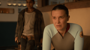 Mike confiesa que le gusta imaginar que Eleven está en algún lugar lejano, en paz, explorando un paisaje hermoso con cascadas, similar al sitio al que alguna vez prometieron huir juntos. La escena muestra a Eleven caminando sola, libre, en un entorno natural que contrasta con todo lo vivido.