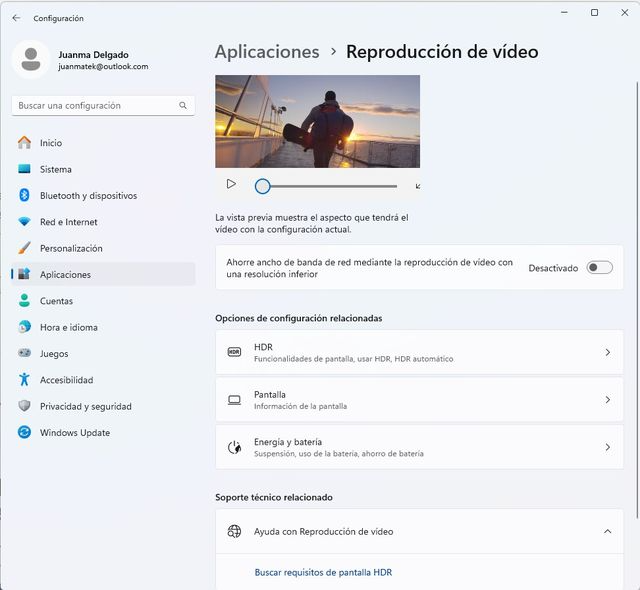 Las aplicaciones que utilizan la plataforma de vídeo integrada en Windows 11 pueden consumir mucha batería. Puedes controlar esta configuración para reducir el consumo.
