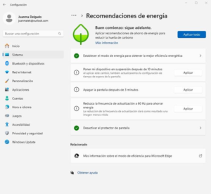 Aplica las recomendaciones de energía de Windows