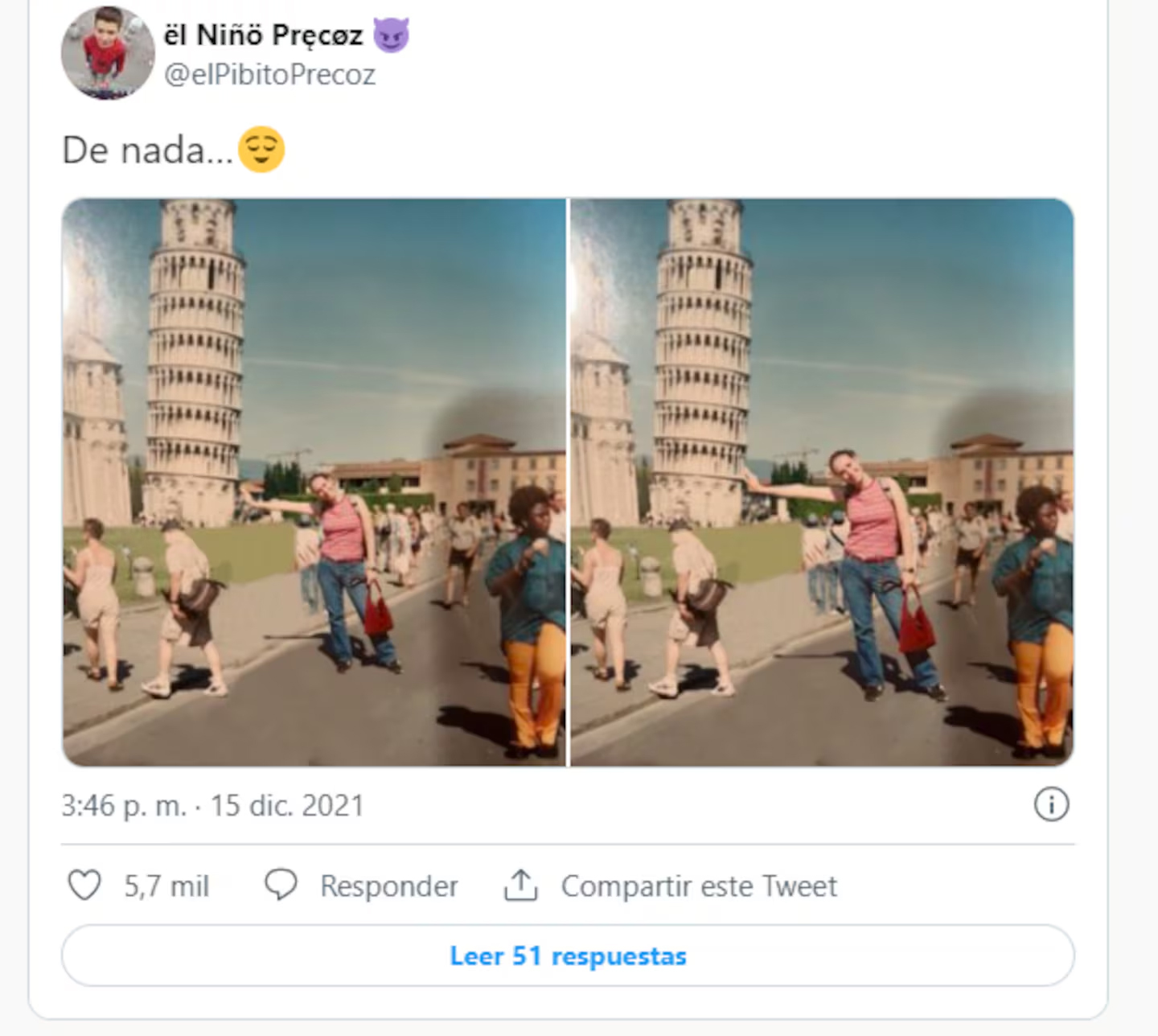 En medio de las bromas, uno de los usuarios de Twitter decidió tomar la iniciativa y corregir digitalmente la imagen, logrando recrear la clásica pose turística de “sujetar” la Torre de Pisa. La autora, visiblemente agradecida, compartió esta nueva versión y mencionó que finalmente tendría la fotografía que siempre quiso, aunque el recuerdo del incidente original era ya parte de su historia favorita de viaje.