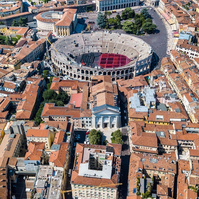 Una de las principales entradas a la plaza es el Portoni della Bra, un portal imponente de mármol y ladrillo rojo que era la entrada principal de Verona hasta el siglo XV. Esta estructura conecta la Piazza Bra con la Arena de Verona, un anfiteatro romano de grandes proporciones que es considerado un icono de la ciudad. Este monumento es el tercero más grande de Italia, después de los de Roma y Pompeya, y su construcción se remonta a hace unos dos mil años. En su época, el anfiteatro era utilizado para combates de gladiadores y otros espectáculos de entretenimiento. Hoy en día, su excelente acústica y sus 30,000 asientos hacen que sea un lugar perfecto para eventos, siendo el escenario de festivales, especialmente el Festival de Ópera, que comenzó en 1913 y donde la legendaria María Callas debutó.