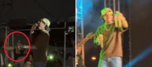 VIDEO: Lanzan botella con líquido sorpresa a Natanael Cano y él bebe en pleno show