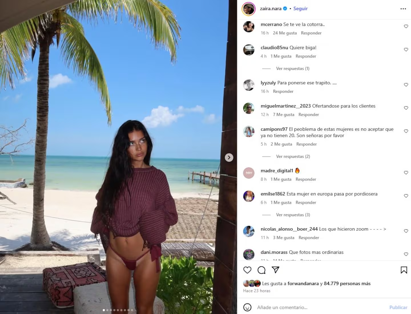 La presencia de Zaira Nara en las redes sociales siempre genera repercusión, y en esta ocasión no fue la excepción. La modelo compartió una serie de imágenes desde el Caribe, donde disfrutó de unos días de descanso, y una de ellas se convirtió rápidamente en el centro de atención. En la postal, la hermana de Wanda Nara luce un traje de baño ultracavado en tono vino tinto, lo que despertó comentarios encontrados entre sus seguidores.